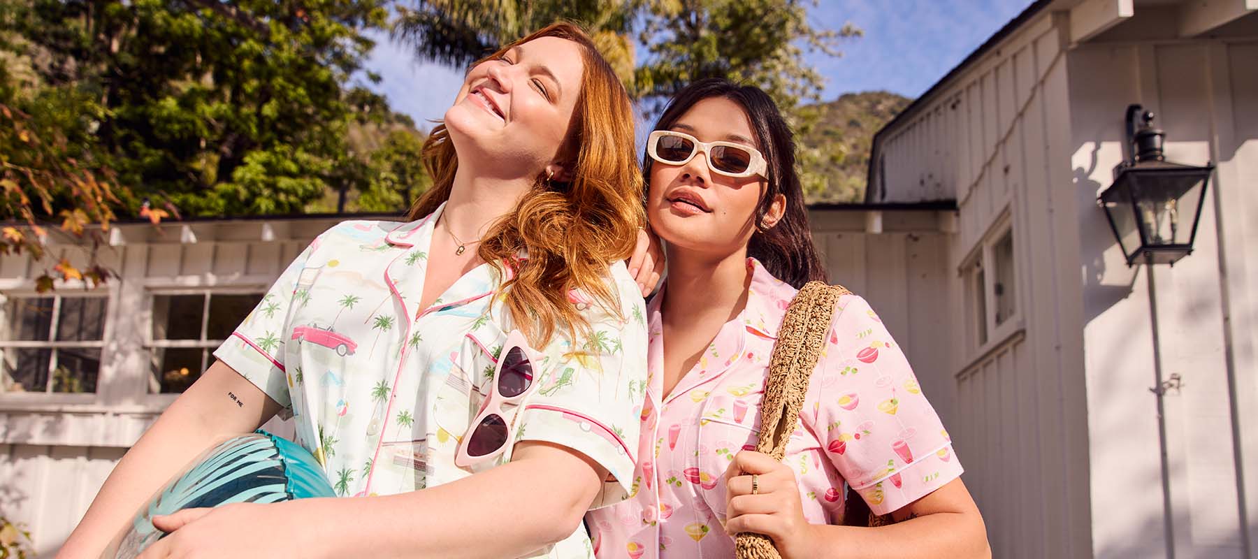 Head to the coast in our collection of pajamas featuring colorful prints, bold stripes and seaside icons. Whether you're relaxing at home or brunching with the crew, these PJs will transport you with their coast vibes.