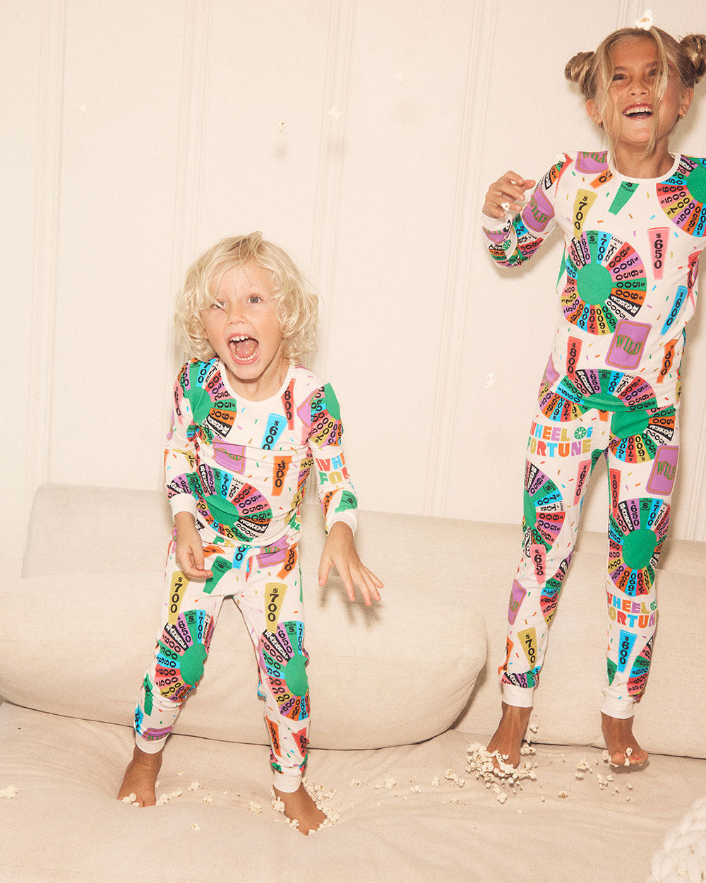 Bring home the grand prize with our official Wheel of Fortune® collab of organic cotton PJs featuring cheerful mini Wheels, bold Wild Cards, and colorful wedges.